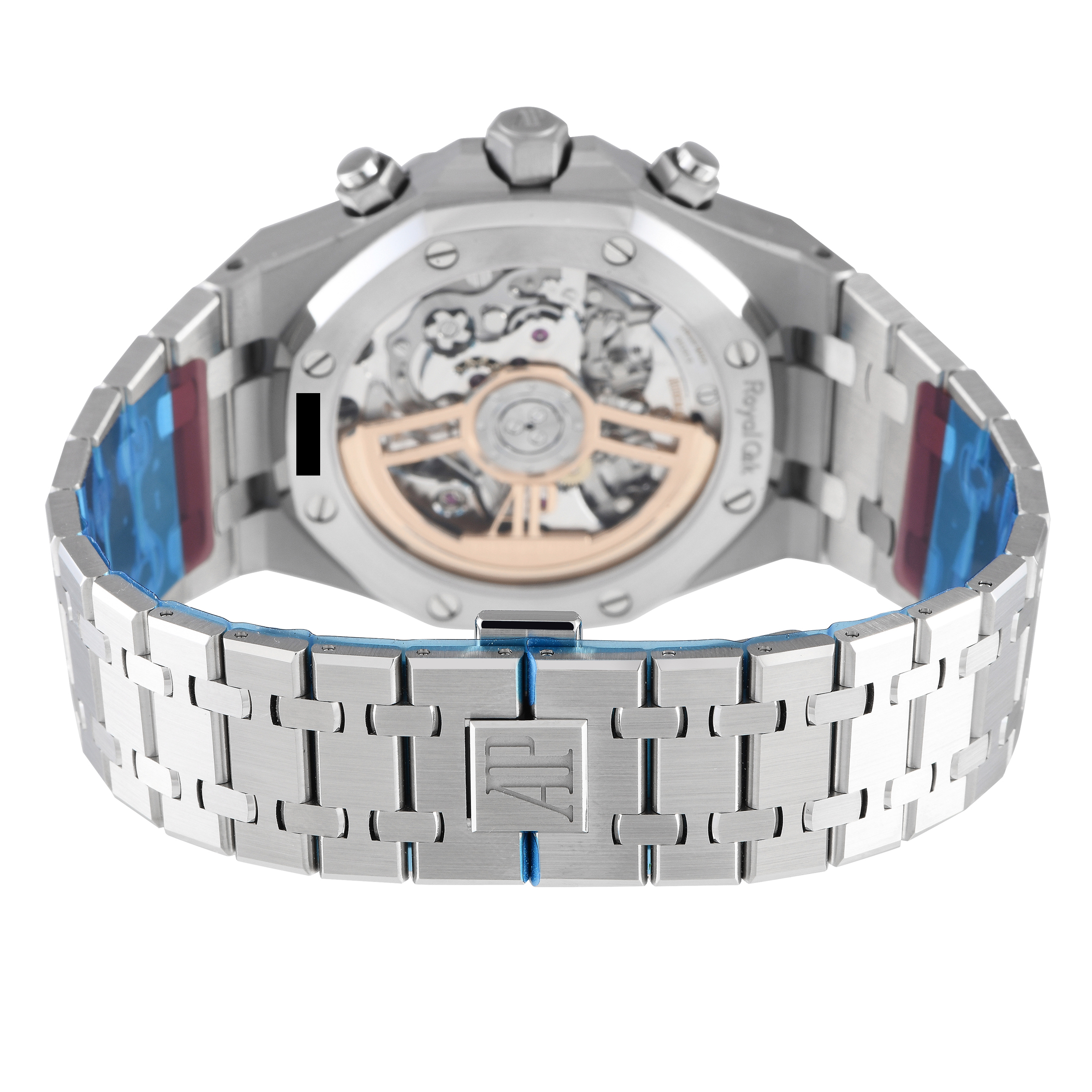 What you’ll like about this hefty all-steel Royal Oak Chronograph is its unconventional and eye-catching khaki green dial with a Grande Tapisserie pattern. The visually pleasing face of the watch is framed by the renowned octagonal bezel mounted on a 41mm case. The notable caliber 4401 with flyback chronograph function is the beating heart of this timepiece.