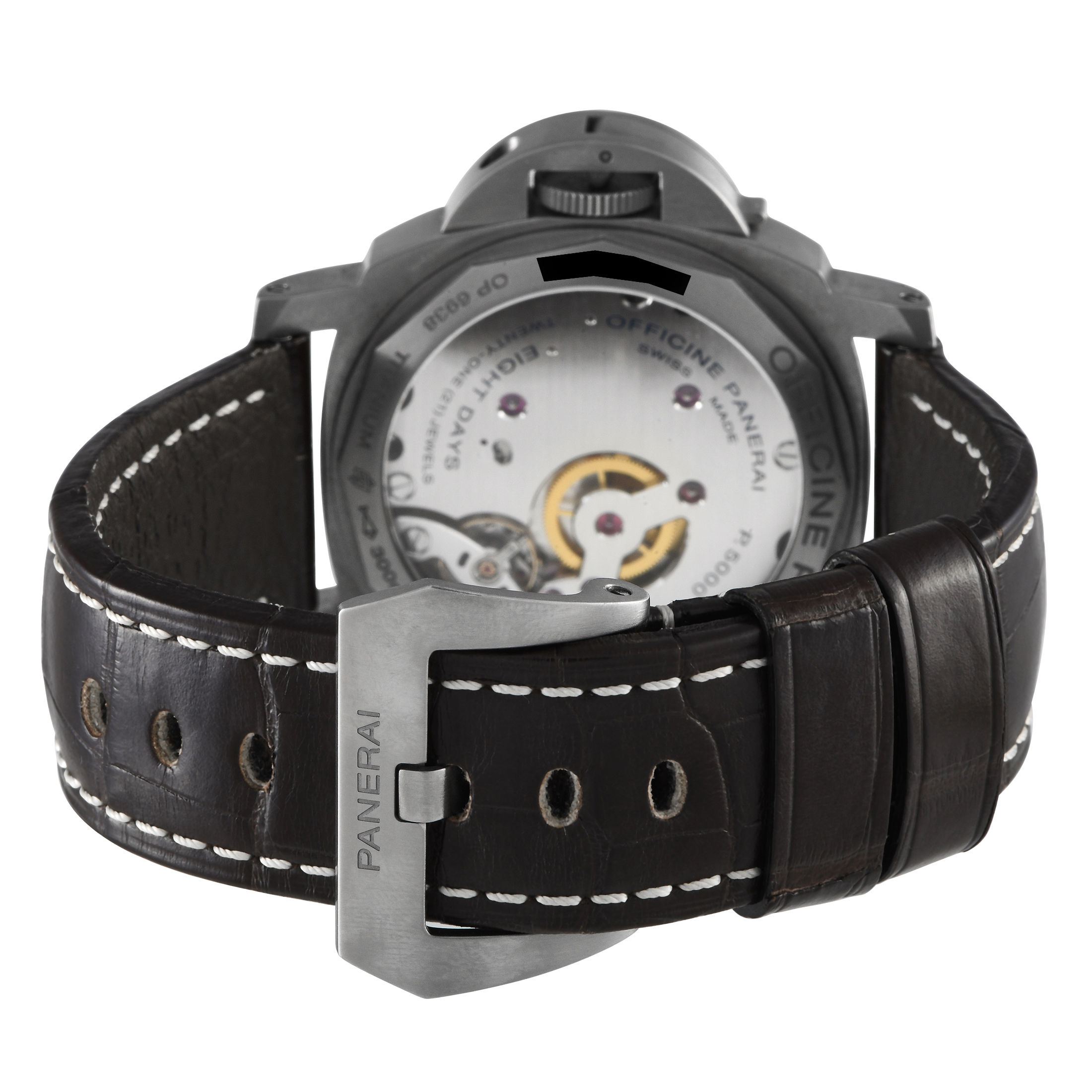 This is a pre-owned Officine Panerai Luminor Marina 8 Days Titanium Watch PAM00564. It comes with papers, extra straps, a strap-changing tool, and the manufacturer’s box.